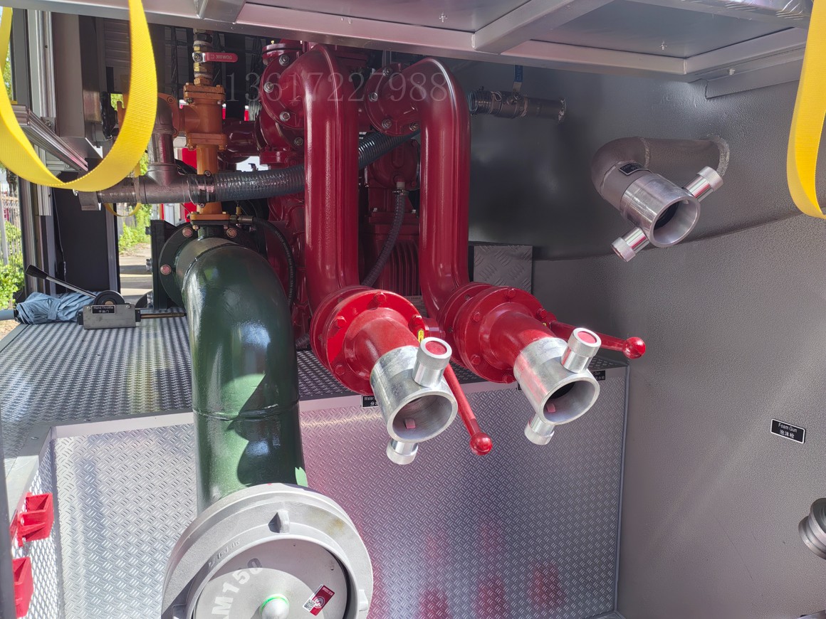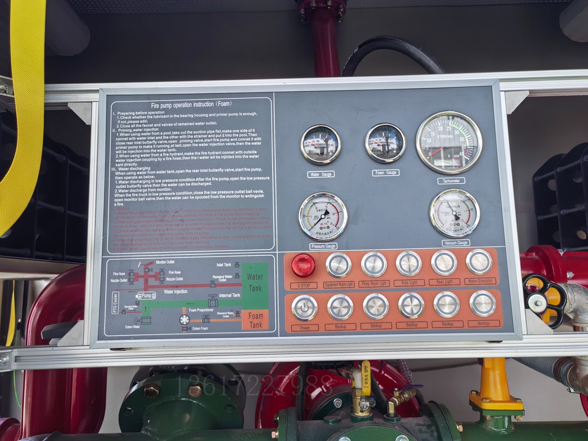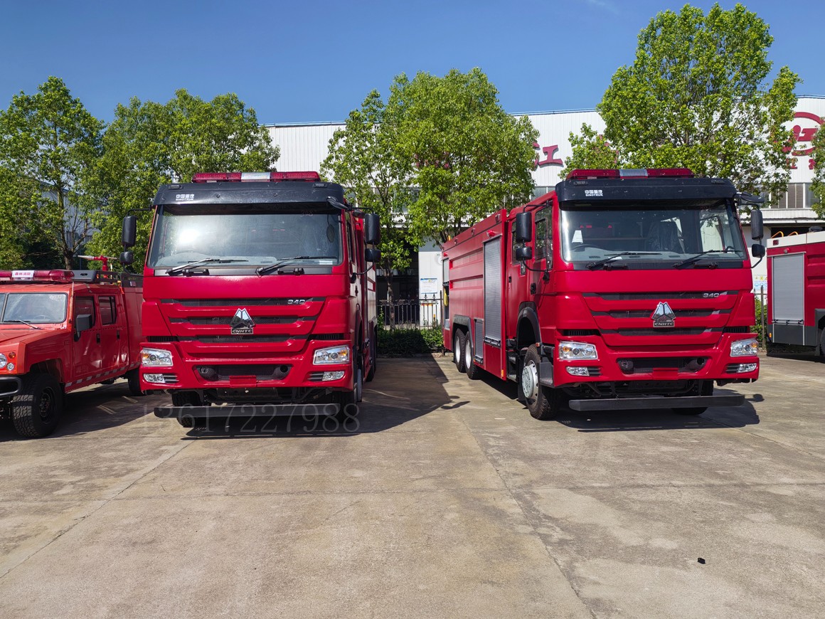 出口版16噸泡沫消防車,采用豪沃右舵底盤改裝,罐體容積16立方米,配備CB10/60消防泵,60消防炮,整車、器材采用英式接口。