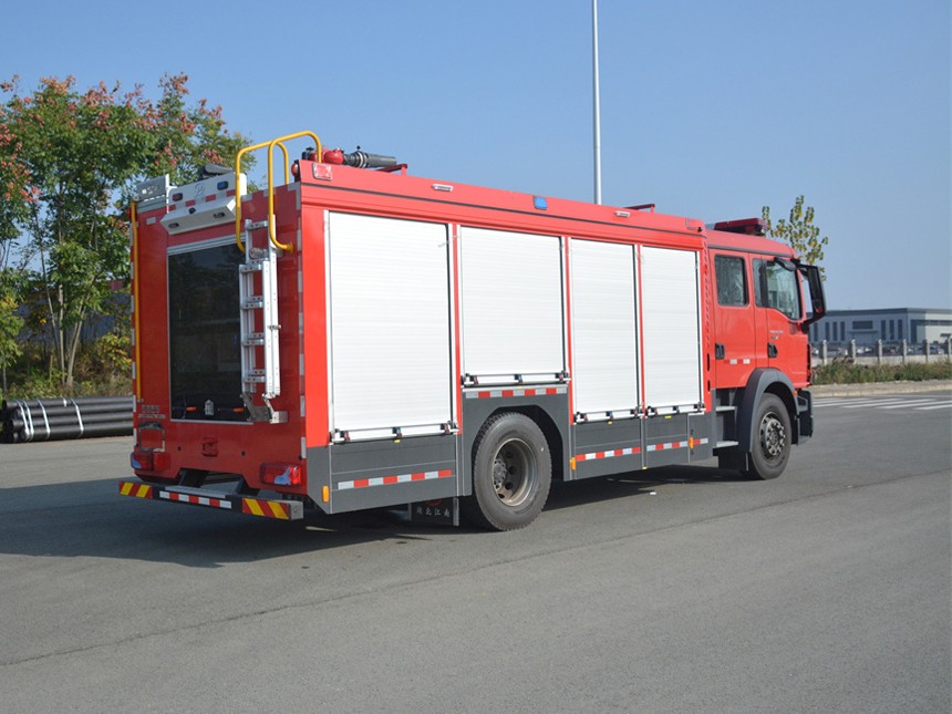 其他 | 載液罐體為304不銹鋼,與底盤采用彈性連接,載水3550kg,A類泡沫液量210kg,B類泡沫液量340kg,裝備了美國希爾生產的PTO CAFS120/50FBU型消防車用壓縮空氣泡沫系統,空壓機流量3400L/min,水泵流量3600L/min,泡沫泵流量12.5L/min,壓縮空氣泡沫混合液總流量5500L/min,車頂法國博克PLKD48-SNAKE2.5(威斯特電控泡沫炮)。 | ||