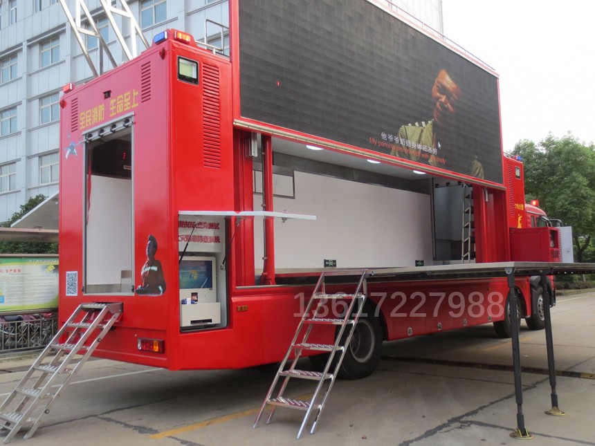 JDF5150TXFXC08型宣傳消防車采用汕德卡底盤為改裝平臺,具備獨立進行消防宣傳功能,宣傳車主要包含多媒體宣傳系統、消防知識查詢系統、廚房安全隱患排查系統、常見火災虛擬演示系統、大屏模擬滅火演示系統、AR火災態勢演練系統、VR火災逃生訓練系統。具備音、視頻宣傳教育和全方位互動體驗的特色,各宣傳教育互動體驗單元模塊,都是貼近國內消防安全宣傳教育實際需要,引進國內外前沿技術定向研發而成。 | |||